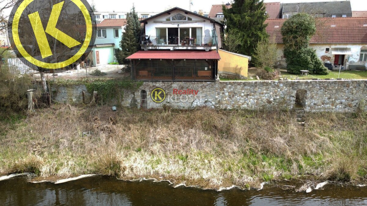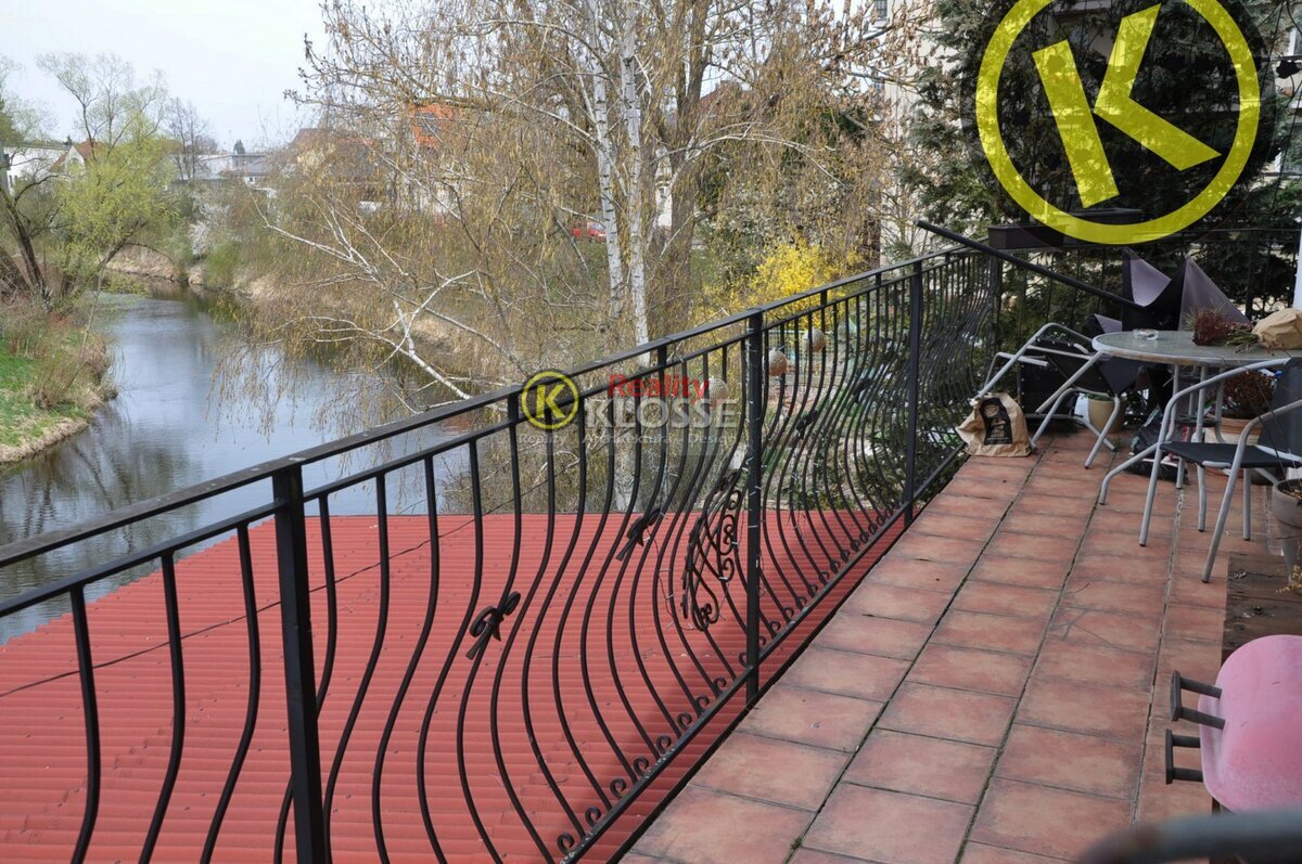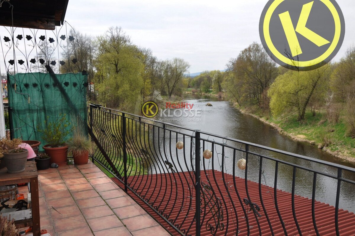 na zastávce MHD, přízemní terasa k řece , nedaleko centra, na hlavní obchodní třídě Rožnova. samostatný provoz a možnost bytu